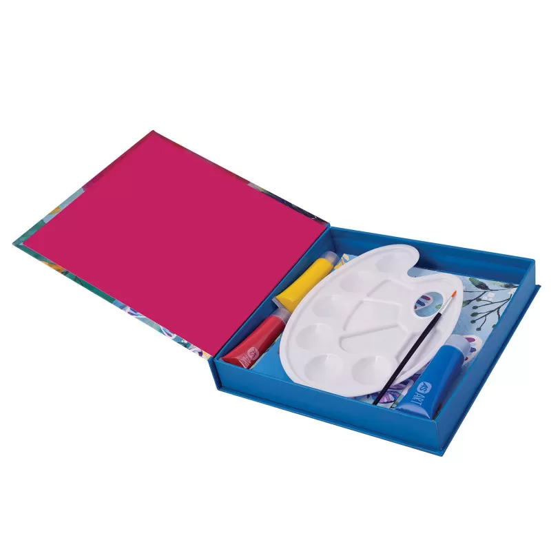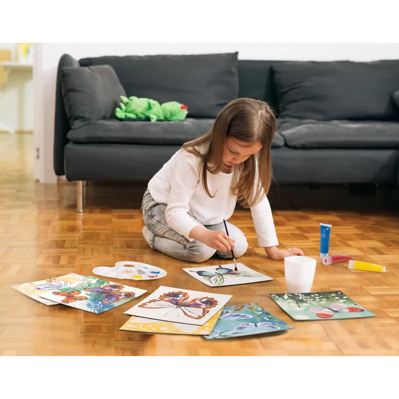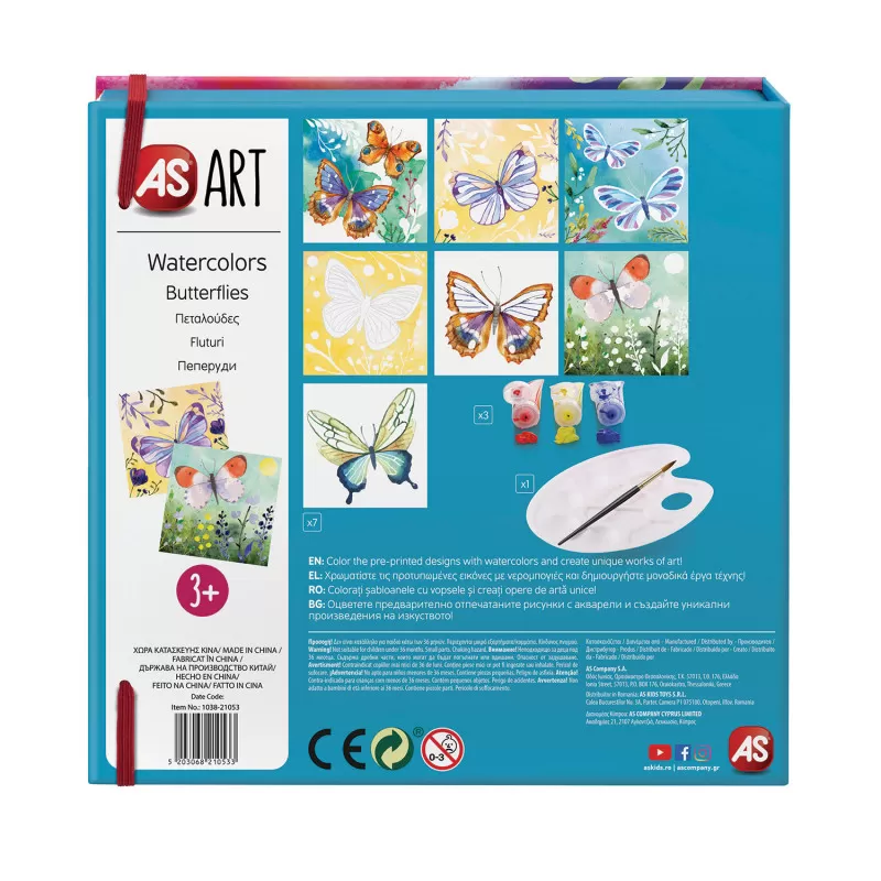 Coloreaza desenele cu acuarele si creeaza opere de arta unice. Contine sabloane cu fluturi 2 sabloane semi-colorate, 5 sabloane albe, 3 culori de acuarela, 1 paleta, 1 pensula si un ghid detaliat pentru a va ghida in procesul de colorare a desenelor.