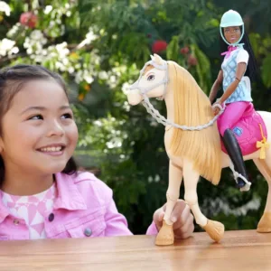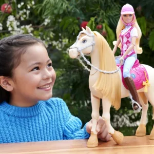 Tornado, calul interactiv din serialul Netflix Barbie Mysteries The Great Horse Chase, aduce distractia din serial la tine acasa! Acest cal de jucarie interactiv ofera peste 20 de sunete si functii, oferind multiple moduri de a te juca, de la ingrijire si coafura, la dans si interpretare. Tornado poate dansa, clipi din ochi, canta melodii inspirate din serial si scoate sunete amuzante. Cu accesorii precum trofeul, mancarea, peria si cosul cu hrana, imaginatia copiilor poate zbura liber alaturi de Barbie si noul ei prieten, Tornado!