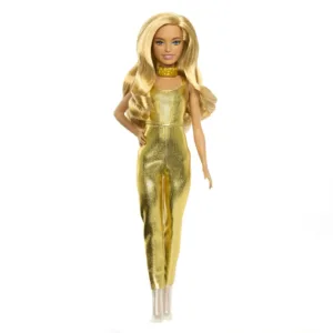 Papusa Barbie sarbatoreste 65 de ani de stil de semnatura, cu rasturnari moderne ale aspectului iconic si o multime de atingeri unice! Inspirata de tinuta ei Golden Dream care a debutat in 1980, papusa Barbie Fashionistas poarta o salopeta aurie perfecta pentru ringul de dans! Cizmele la moda, transparente, cu toc inalt si un colier &bdquoDream&rdquo cu guler auriu ridica volumul acestei tinute! Papusa Barbie are un tip de corp minion si isi coafeaza parul lung si blond cu valuri pentru a completa aspectul de petrecere! Cu posibilitati infinite de stil si de povestire, papusile Barbie sunt un cadou grozav pentru fani, colectionari si copii cu varsta peste 3 ani!