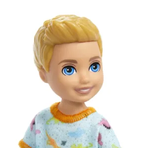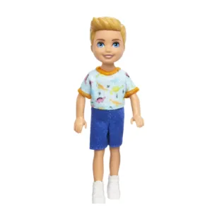 Papusile Barbie Chelsea vin cu pantofi si piese vestimentare detasabile. Creeaza povesti nenumarate cu scenarii diferite impreuna cu papusile Chelsea. Pentru scenarii creative achizitioneaza toate papusile Chelsea. Aceasta papusa Chelsea este adorabila, avand un imprimeu cu dinozauri pe partea de sus si pantaloni albastri. Parul sau blond este modelat intr-un stil modern, iar adidasii albi ii completeaza look-ul.