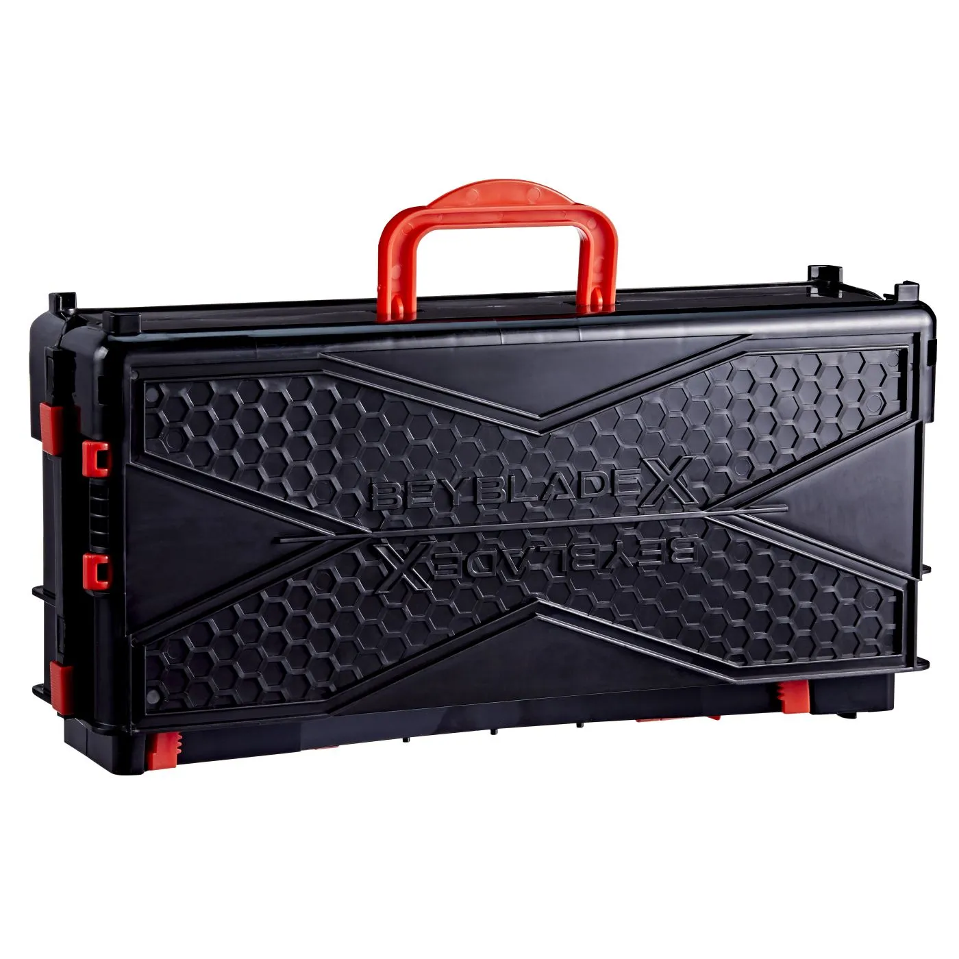Experimenteaza Beyblade X, urmatoarea generatie de stadioane, lansatoare si topuri Beyblade! Jucatorii de blade isi lanseaza topurile in ciocniri aprige impotriva adversarilor pentru a marca puncte primul care acumuleaza 4 puncte castiga. Du batalia oriunde mergi cu Beyblade X Clash and Carry Beystadium! Acest stadion portabil se deschide intr-o arena de lupta si se inchide pentru transport si depozitare usoara. Este dotat cu sistemul de angrenaje X-Celerator pentru a-ti imbunatati jocul. Cand angrenajul unui top Beyblade X se agata de sina stadionului, acesta poate accelera rapid intr-o cursa Xtreme in jurul stadionului pentru coliziuni zdrobitoare. Asociaza Beystadium-ul cu lansatoare si lamele, clichetele si piesele interschimbabile ale topurilor Beyblade X pentru a-ti crea propriul Bey de neegalat. (Lansatoarele si topurile se vand separat, in functie de disponibilitate.) Parinti, scanati codul de pe topurile Beyblade X pentru a lupta in aplicatia Beyblade X! Jucariile Beyblade cu topuri metalice turnate autentice Takara Tomy sunt cadouri excelente pentru baieti si fete cu varsta de 8 ani si peste.