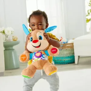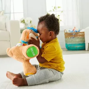 Copiii vor rade, vor invata si se vor juca cu noul Catelus Vorbitor cu continut educativ pe Etape de dezvoltare!Catelusul este acelasi prieten moale, dragastos care raspunde la atingerea bebelusului cu fraze dragute si cantece ritmate – dar acum este dotat cu tehnologia Etape de dezvoltare care schimba continutul de invatat pe masura ce bebelusul creste. Este aici pentru a se asigura ca invatarea nu se opreste niciodata, raspunzand la atingerea bebelusului cu fraze dragute si cantece dinamice despre partile corpului, sentimente si multe altele. Apasati inima pentru a vedea cum se lumineaza si clipeste odata cu muzica.Deoarece fiecare bebelus se dezvolta in ritmul sau, tehnologia Etape de dezvoltare va ofera posibilitatea de a selecta etapa de dezvoltare cea mai potrivita pentru copilul dumneavoastra! Exista o varietate de cantece, fraze si sunete adecvate din punct de vedere al dezvoltarii, in cele trei niveluri de joaca.Continutul educativ se schimba pe masura ce bebelusul creste Nivelul 1 Explorare(varsta recomandata 6 luni+) – Explorarea de catre bebelus cu manutele este rasplatita cu sunete haioase, cu primele cuvinte si cu cantecele. Nivelul 2 Incurajare(varsta recomandata 12 luni+) – Acest nivel incurajeaza bebelusul sa numere, sa gaseasca culorile si sa identifice parti ale corpului.Nivelul 3 Imaginatie(varsta recomandata 18 luni+) – Catelusul Iprinde viataI cu cantece de fredonat, sunete si fraze care incurajeaza bebelusul sa joace roluri, sa-si imagineze si sa-si impartaseasca prietenia prin imbratisari. Peste 50 de cantece de intonat, melodii si fraze, labele, burtica, urechile si inima care se aprinde raspund la atingerea bebelusului, prezinta partile corpului, cifrele, culorile si multe altele. Include tehnologia Etape de dezvoltare (invatarea se schimba pe masura ce bebelusul creste cu 3 niveluri de joc). Ajuta la dezvoltarea capacitatilor senzoriale si motorii fine. JUCARIE INTERACTIVA IN LIMBA ROMANA.