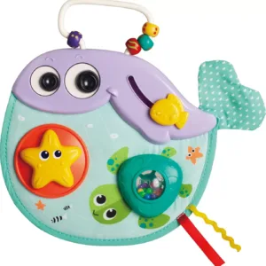 Centru de activitati in forma de balenuta. Aceasta balena uimitoare de activitate este plina de functii pentru ca copilul sa se distreze jucandu-se si invatand. Aceasta jucarie de activitate va stimula curiozitatea de a imbunatati imaginatia si creativitatea, imbunatatind, de asemenea, gandirea logica si abilitatile de rezolvare a problemelor. Componente precum impingerea, tragerea, prinderea sau intoarcerea pentru a imbunatati dexteritatea degetelor si a mainii, coordonarea ochi-mana si abilitatile motorii fine. Jucarie recomandat copiilor mai mari de 6 luni.