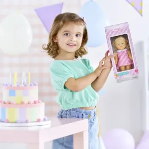 Mini Corolline Rosy este o papusa mica, cu pielea deschisa la culoare, de 20 cm, &bdquogata de oferit cadou&rdquo. Are un corp moale la atingere, complet din vinil, si un parfum delicat de vanilie. Ochii ei albastri sunt pictati pe fata, iar parul blond, lung si matasos este perfect pentru coafare usoara. Este imbracata intr-o rochie in carouri si poarta o pereche de pantofi mulati asortati,