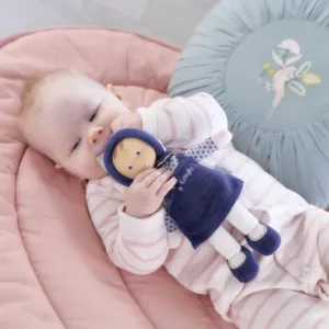Papusa cu corp moale este fabricata dintr-un material foarte moale si are picioare atarnate. Datorita greutatii sale reduse, papusa este usor de transport de catre copii si perfecta pentru a fi imbratisata si iubita. Papusa dragalasa Miss Blue Star Dreams ii insoteste chiar si pe cei mai mici copii ca o prietena reconfortanta, cu zambetul ei primitor si dimensiunea sa confortabila de 25 cm. Papusa poate fi spalata la masina la ciclu delicat. De asemenea, in interior este cusuta o eticheta pentru introducerea numelui si adresei in caz de pierdere. Toate papusile Corolle au un parfum placut si delicat de vanilie. Acest lucru creeaza o atmosfera confortabila si este calmanta.