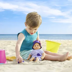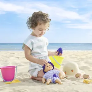 Papusa cu corp moale poarta un costum de baie dragut albastru si alb, cu o palarie de soare care poate fi, de asemenea, indepartata. O balena albastra care stroteste apa este inclusa langa papusa. Papusa bebelu este potrivita pentru a se juca in cada si apoi fi agatata la uscat poate folosi o clapa cusuta in haine. Cand adormiti papusa, ochii ei se inchid. Parfum caracteristic de vanilie, toate papusile Corolle au un parfum placut si delicat de vanilie. Papusa bebelus de 30 cm este potrivita pentru copiii de 18 luni si peste.