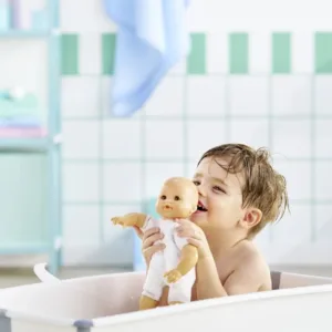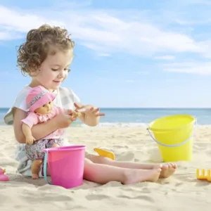 Inainte, marinari! Papusa de baie Coralie iubeste joaca in apa! Aceasta mica papusa bebelus cu pielea alba este companionul perfect pentru inot, care ii ajuta pe copii sa se familiarizeze cu toate tipurile de medii acvatice. Clema cusuta in spate permite agatarea ei la uscat dupa baie si joaca in apa. Masoara 30 cm, dimensiunea perfecta pentru a fi manevrat de bratele si manutele unui copil. Corpul sau moale ii permite sa adopte aceleasi pozitii ca un bebelus adevarat. Fata, bratele si picioarele sale, cu un parfum delicat de vanilie, sunt fabricate din vinil moale la atingere. Degetul mare poate fi tinut in gura. Cu ochii sai caprui somnorosi, adoarme cand este asezata pe spate. Este imbracata intr-un tricou din bumbac tifon cu guler, pantaloni scurti florali si o caciula asortata. Vine cu o ratusca de baie care scuipa apa atunci cand este apasa dupa scufundare. Vine cu o colectie variata de haine si accesorii din gama Corolle My First Baby Doll pentru dezvoltarea bebelusului pentru prima data. Potrivit pentru varste de la 18 luni in sus.