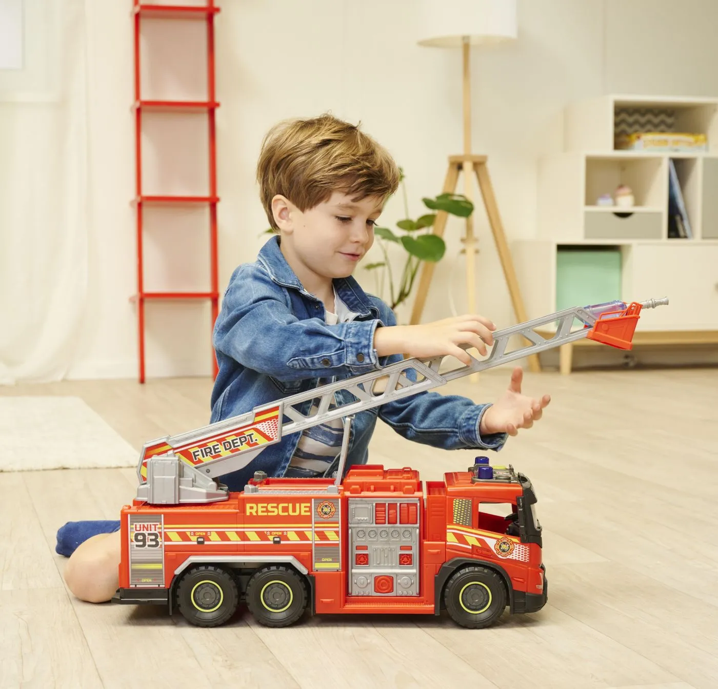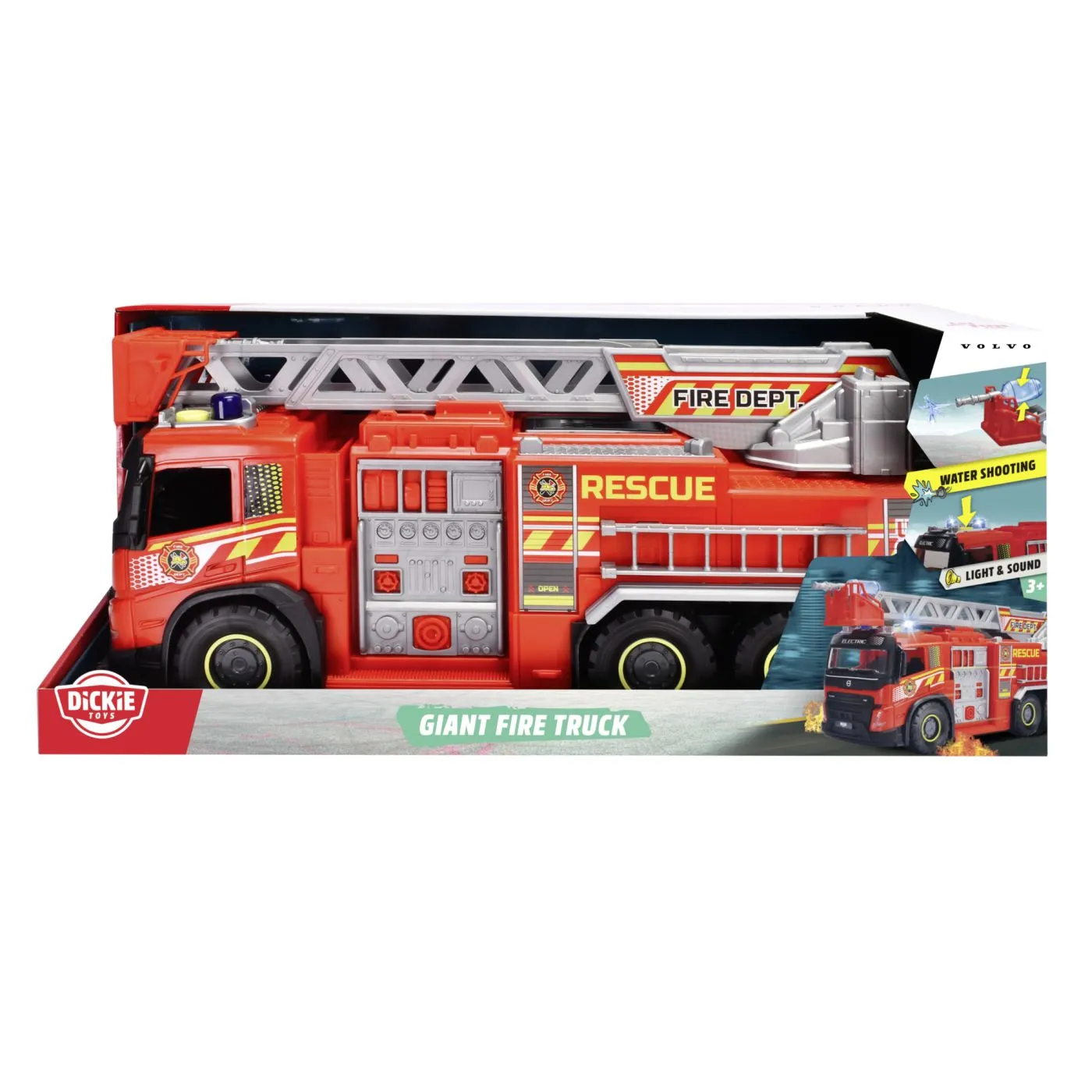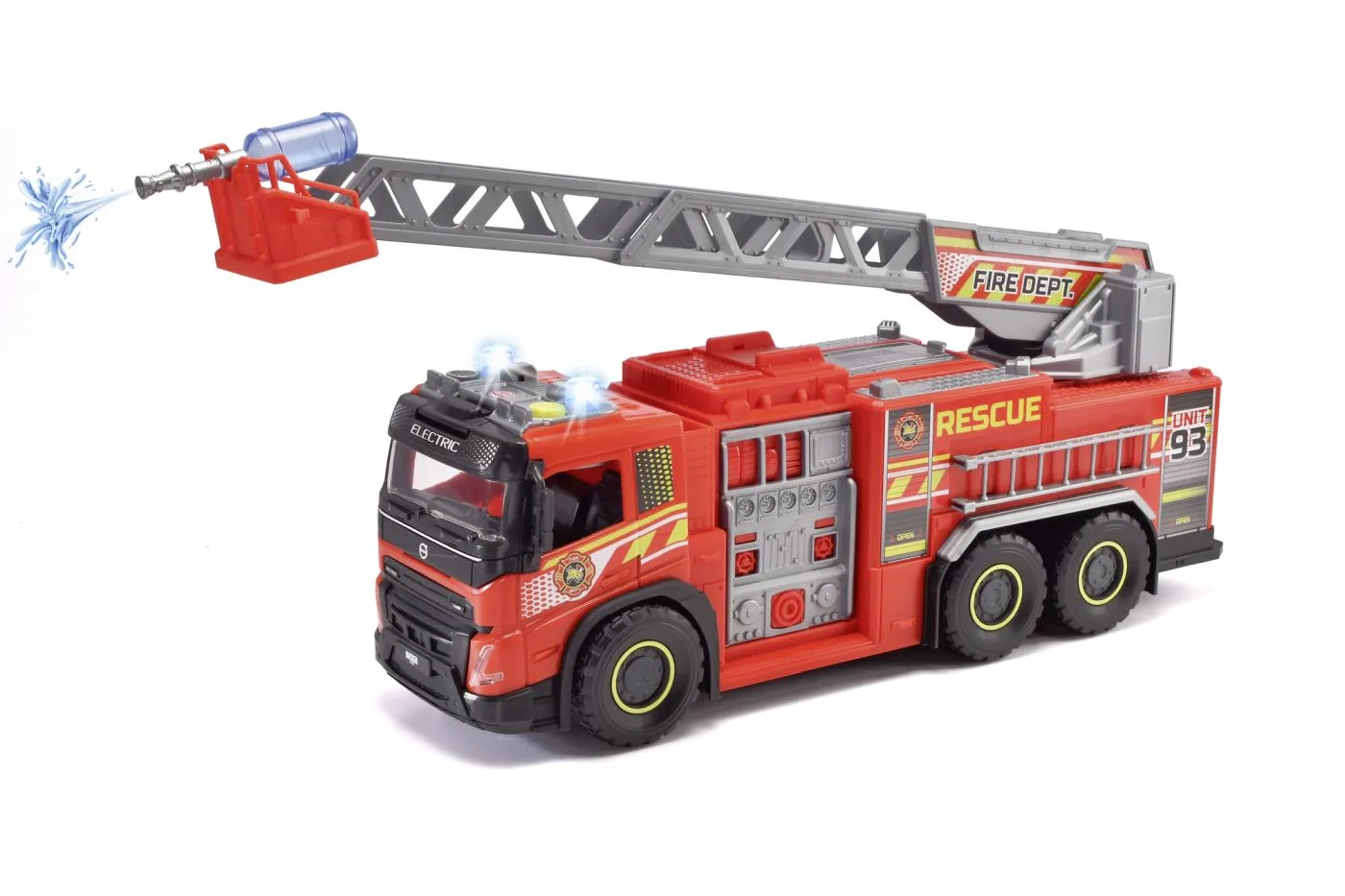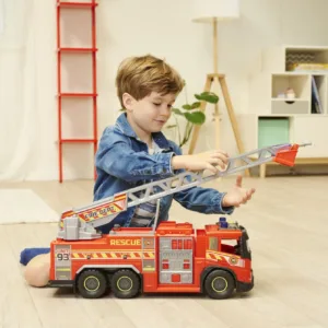 Masina de pompieri extra-mare cu pulverizator de apa si scara, masina de pompieri pentru copii cu varsta de la 3 ani in sus, cu lumini si sunete, include baterii. Aceasta masina de pompieri de jucarie rosu aprins pentru copii cu varsta de la 3 ani in sus masoara o lungime impresionanta de 57 cm. Si cand scara rotativa este extinsa, misiunea de stingere a incendiilor sau de salvare incepe cu adevarat! Cu ajutorul celor 2 sticle de rezervor de apa si a tunului cu apa de pe masina de pompieri, copiii pot recrea toate aventurile de stingere a incendiilor si pot pulveriza apa reala.
