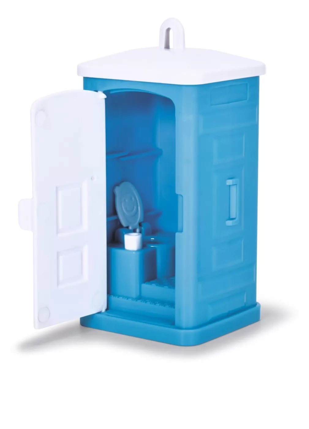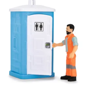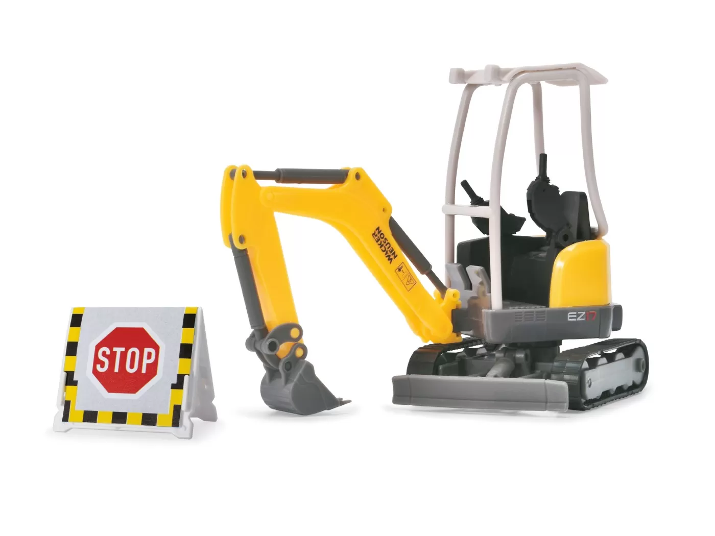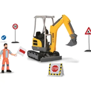 Setul contine un excavator Neuson, o figurina, toaleta, semne rutiere si accesorii, iar cabina excavatorului este rotativa. Toaleta are sunet, iar excavatorul are lugimea de 15 cm .