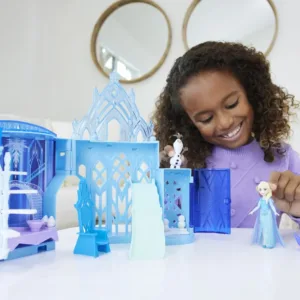 Inspirat de filmul clasic de animatie Frozen de la Disney, setul de joaca Elsa Castelul de gheata le ofera copiiilor ocazia sa recreeze momente magice intr-un decor emblematic. Setul se deschide, transformandu-se intr-o casa de papusi cu multiple zone de joaca inspirate din film. Printre elementele incluse se numara un tobogan pliabil si o sanie pentru aventuri spectaculoase pe gheata, o scara de gheata care duce spre balcon si o camera ascunsa special destinata comorilor lui Olaf. In plus, setul vine cu personaje indragite Olaf, doua figurine Snowgie, un tron si un pat pentru Elsa. Mica papusa Elsa este articulata la brate, picioare si gat si poarta o rochie albastra detasabila, exact ca in film. Mai multe playset-uri pot fi stivuite sau conectate intre ele, permitand copiilor sa construiasca regatul suprem Frozen! Pachetul contine 1x papusa Elsa, 1x ansamblu de joaca, 3x figurine personaje, 6x accesorii.