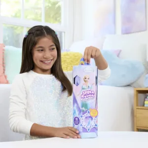 Disney Frozen Elsa primeste o intorsatura magica in aceasta experienta de unboxing Disney Frozen Spin & Reveal! Mai intai deschideti floarea pentru a dezvalui o scena de joaca tematica cu siluete misterioase. Apoi roteste pachetul pentru a gasi 5 pungi misterioase pline cu 5 accesorii si 5 autocolante. Dezvaluirea finala este o papusa de moda Elsa intr-o tinuta frumoasa inspirata de film! De asemenea, copiii pot decora scena de joaca si pot imagina povesti cu ea ca fundal. Papusa nu poate sta singura.