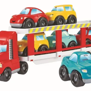 Setul Ecoiffier Abrick Transportator Auto Platforma este alegerea perfecta pentru micii iubitori de vehicule si constructii! Acest set include o platforma de transport si un camion, ideal pentru a transporta si incarca diferite vehicule sau obiecte. Cu piese mari, usor de manevrat si colorate, acest set este perfect pentru copiii care iubesc sa se joace cu masini si camioane. Platforma este echipata cu un suport pentru a incarca si descarca vehiculele, iar designul robust si atractiv garanteaza ore de distractie si invatare. Piesele sunt realizate din plastic durabil si sigur pentru copii, iar dimensiunile lor sunt perfecte pentru a incuraja dezvoltarea abilitatilor motorii fine si a imaginatiei celor mici. Setul ajuta la stimularea creativitatii si la invatarea despre transport si logistica vehiculelor. Este o alegere excelenta pentru jocuri de rol, dezvoltarea gandirii logice si a coordonarii ochi-mana, fiind, totodata, o activitate placuta si educativa. Ideal pentru copiii care iubesc masinile si aventurile pe drumuri, setul Ecoiffier Abrick Transportator Auto Platforma va aduce un plus de distractie in joaca lor!