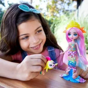 Lasati aceste papusi adorabile si prietenii lor animalute sa va incante. Papusile Enchantimals &trade sunt personaje care impartasesc o legatura speciala cu prietenii lor animalute – sunt mereu impreuna si arata la fel! 7 personaje in sortiment Fiecare se vinde separat, in functie de disponibilitate. Culorile si decoratiunile pot varia. Acest set contine personajul Radia Rainbow Fish si Flo.