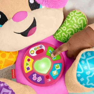 Catelusul interactiv Fisher-PriceRade si Invata este jucaria ideala pentru bebelusi, combinand distractia cu invatarea prin joaca. Cu peste 80 de cantece, sunete si expresii amuzante, catelusul ii ajuta pe cei mici sa descopere primele cuvinte, culori, litere, numere si forme. Textura moale si designul prietenos il transforma intr-un companion perfect pentru imbratisari si explorare zilnica. Functia Smart Stages permite ajustarea nivelului de invatare in functie de varsta copilului, de la 6 pana la 36 de luni, oferind continut adaptat etapelor de dezvoltare. Prin apasarea butoanelor luminoase de pe burtica, copilul invata prin cantece si fraze simple concepte de baza precum ABC, 123, parti ale corpului si emotii. Aceasta jucarie educativa incurajeaza dezvoltarea limbajului, coordonarea mana-ochi si recunoasterea senzoriala, fiind un cadou excelent pentru bebelusi curiosi care descopera lumea pas cu pas.