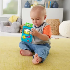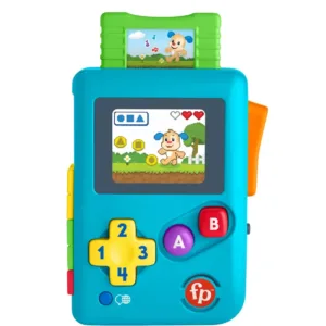 Bebelusii curiosi si iubitorii de mini-jocuri se pot juca la fel ca tine cu jucaria muzicala Laugh & Learn® Consola de Joc de la Fisher-Price® interactiva in limba romana. Aceasta consola de jocuri portabila arata exact ca versiunea reala, cu un D-pad, butoane A si B, caseta de joc si un ecran iluminat. Pe masura ce bebelusii si copiii apasa butoanele pentru a &bdquojuca&rdquo jocul, ei vor auzi muzica, sunete si fraze distractive care invata directii, culori, numere si forme. Apasarea, glisarea si comutarea butoanelor si a activitatilor ajuta la intarirea dexteritatii bebelusului si a coordonarii ochi-mana.Consola de jocuri portabila pentru bebelus cu lumini, muzica si activitati practice.Apasati butoanele sau apasati pe caseta de joc pentru lumini, cantece, sunete si fraze.Învata directii, culori, numere si forme.Dimensiune perfecta pentru mainile mici, cu glisoare de forma si butonul de comutare pe laterale.Pentru copii cu varsta cuprinsa intre 6-36 de luni.