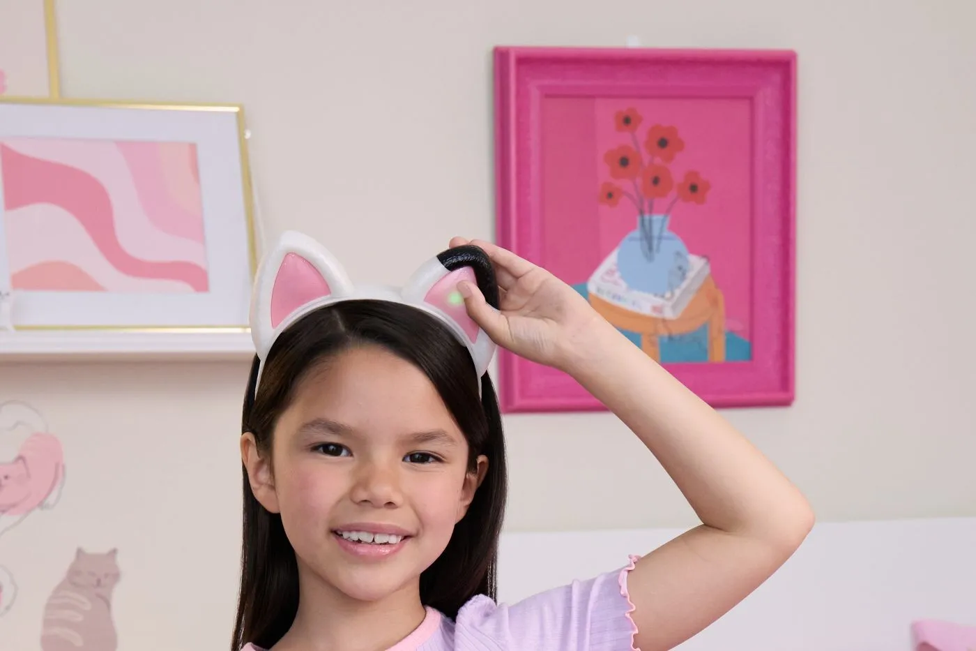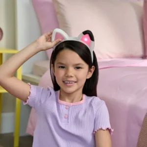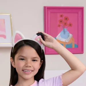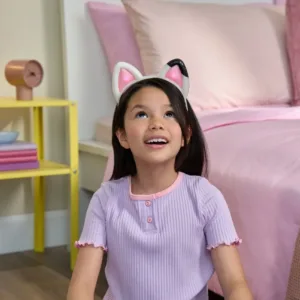 Aceste urechi interactive de pisica arata exact ca cele purtate de Gabby in serial. Pune-ti Urechile Interactive si pregateste-te de aventura! Dispunand de lumini si peste 10 sunete, fraze si melodii, vei avea parte de distractie nesfarsita! Pur si simplu apasa una dintre urechile roz stralucitoare pentru a le porni, apoi prinde urechea stanga pentru a auzi fraze de la Gabby. Pentru a activa efecte sonore si melodii din serial, prinde urechea dreapta si organizeaza o petrecere de dans in timp ce muzica se aude! Intra in Modul Miau apasand ambele urechi in acelasi timp pentru lumini pulsante si mieunaturi fantastice de pisica! Sunt accesoriul perfect pentru a aduce la viata momentul memorabil de micsorare din serial. Purtand propria pereche de urechi de pisica, te vei simti exact ca Gabby! Foloseste-ti imaginatia pentru a crea si a juca aventurile tale ca Gabby.