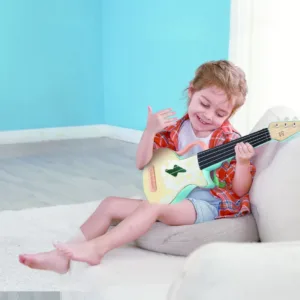 incepeti explorarea muzicala pe acesta chitarra ukulele! Include un carte de instructiuni si un maner pentru a usura transportul. Acordati corzile si apoi urmati cartea de instructiuni inclusa pentru a reda cateva melodii preferate! Startul perfect pentru starul rock incepator! Excelent pentru dezvoltarea abilitatilor auditive si creative. invata copiii mici despre ritmul de baza, alergarea si alte tehnici musicale. Pregatire perfecta pentru invatarea muzicala avansata. Jucariile sunt realizate din lemn, folosind materiale ecologice, vopsite in culori atragatoare cu vopsele nontoxice, care depasesc cele mai inalte si stricte standarde internationale de siguranta si calitate, precum EN71, ISO9001, ASTM F963 si altele. De multi ani, Hape a creat jucarii fantastice, de inalta calitate, folosind materiale ecologice si durabile, fiecare produs fiind atent proiectat pentru a stimula abilitatile senzoriale, fizice si emotionale.