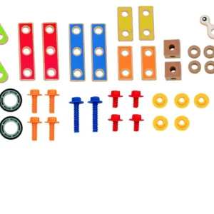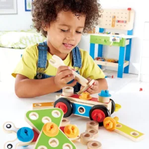 Acest set de 42 de piese si conectori incurajeaza copilul sa construiasca si&hellip iar sa construiasca! Posibilitatile de combinare a pieselor sunt infinite, lasand copilul sa invete prin incercare, stimuland imaginatia si creativitatea. Jucaria contine si cateva idei cu care sa incepeti. Jucariile sunt realizate din lemn, folosind materiale ecologice, vopsite in culori atragatoare cu vopsele nontoxice, care depasesc cele mai inalte si stricte standarde internationale de siguranta si calitate, precum EN71, ISO9001, ASTM F963 si altele. De multi ani, Hape a creat jucarii fantastice, de inalta calitate, folosind materiale ecologice si durabile, fiecare produs fiind atent proiectat pentru a stimula abilitatile senzoriale, fizice si emotionale.