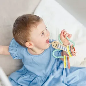 Acest fluture dragut este o modalitate distractiva pentru bebelusi de a se distra in timp ce isi practica prinderea si tinerea! Usor de atasat la un patut sau carucior, aripile fluturelui sunt fabricate din silicon si sunt 100% sigure de mestecat. Trei inele de plastic deschise. Jucariile sunt realizate din lemn, folosind materiale ecologice, vopsite in culori atragatoare cu vopsele nontoxice, care depasesc cele mai inalte si stricte standarde internationale de siguranta si calitate, precum EN71, ISO9001, ASTM F963 si altele. De multi ani, Hape a creat jucarii fantastice, de inalta calitate, folosind materiale ecologice si durabile, fiecare produs fiind atent proiectat pentru a stimula abilitatile senzoriale, fizice si emotionale.