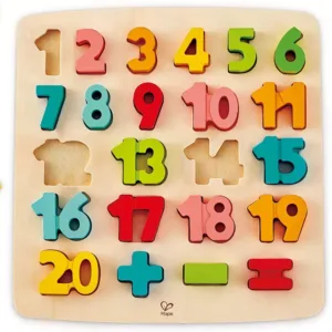 Unu, doi, trei! Numararea este foarte distractiva! Dar puteti numara pana la 20? Acest puzzle colorat ofera copiilor prima lor introducere in lumea numerelor si include simboluri matematice pentru cursantii mai avansati. Goliti piesele puzzle-ului si apoi puneti-le inapoi in puzzle in ordinea corecta. Excelent pentru invatarea numerelor si abilitatile motorii! Luati piesele puzzle-ului si puneti-le pe o suprafata dura pentru joc independent. Copiii mai in varsta pot folosi simbolurile matematice pentru a crea ecuatii simple, cum ar fi 1 + 2 3. &bull. Set de puzzle din 24 de piese. Include numerele 1-20 si trei simboluri matematice Jucariile sunt realizate din lemn, folosind materiale ecologice, vopsite in culori atragatoare cu vopsele nontoxice, care depasesc cele mai inalte si stricte standarde internationale de siguranta si calitate, precum EN71, ISO9001, ASTM F963 si altele. De multi ani, Hape a creat jucarii fantastice, de inalta calitate, folosind materiale ecologice si durabile, fiecare produs fiind atent proiectat pentru a stimula abilitatile senzoriale, fizice si emotionale.