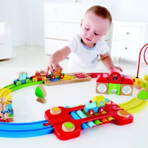 Invatati in timpul jocului cu acest set feroviar colorat. Rezolvati labirintul de margele si sortati formele in timp ce conduceti trenul animalelor. Include piese muzicale pentru xilofon si tamburina. incepeti prin a construi configuratia pistei prezentata pe cutie. Exploreaza piesa rezolvand puzzle-urile si facand muzica pe masura ce mergi. Puneti triunghiul, dreptunghiul si semicercul in linia de sortare a formelor, astfel incat trenul sa poata trece. Apoi rezolvati labirintul de margele. Ascultati melodia frumoasa in timp ce conduceti peste melodia Xylophone Melody si sunetul fericit al Tambourine Track. Cele sase blocuri de constructii au caracteristici optice distractive, inclusiv o oglinda, o prisma si o lupa Jocul stimuleaza invatarea si rezolvarea problemelor. Include piesa de xilofon care reda un ton pe masura ce un tren circula Tamburina urmeaza ritmul in timp ce trenurile trec Include tren cu tematica jungla cu vagoane de tigru, leu si elefant Blocurile optice includ functii de oglinda, prisma si lupa Compatibil cu majoritatea celorlalte seturi de sine din lemn. Jucariile sunt realizate din lemn, folosind materiale ecologice, vopsite in culori atragatoare cu vopsele nontoxice, care depasesc cele mai inalte si stricte standarde internationale de siguranta si calitate, precum EN71, ISO9001, ASTM F963 si altele. De multi ani, Hape a creat jucarii fantastice, de inalta calitate, folosind materiale ecologice si durabile, fiecare produs fiind atent proiectat pentru a stimula abilitatile senzoriale, fizice si emotionale.