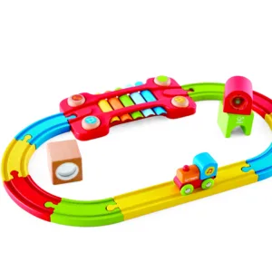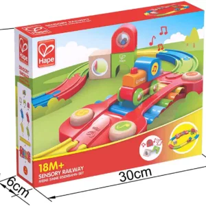Acest set de cale ferata este o sarbatoare pentru ochi! Include o melodie, o locomotiva, un arc si o oglinda. Ideal pentru stimularea copiilor mai mici. incepeti prin a construi configuratia pistei prezentata pe cutie. Conduceti vagonul colorat peste Xylophone pentru a crea o melodie vesela. Set de sine stimulatoare sensorial. Xilofonul reda o melodie pe masura ce locomotiva este condusa peste ea. Piesele curcubeului ii ajuta pe copii sa invete despre culoare. Blocurile ajuta la dezvoltarea abilitatilor motorii si ii invata pe copii despre reflexii. Jucariile sunt realizate din lemn, folosind materiale ecologice, vopsite in culori atragatoare cu vopsele nontoxice, care depasesc cele mai inalte si stricte standarde internationale de siguranta si calitate, precum EN71, ISO9001, ASTM F963 si altele. De multi ani, Hape a creat jucarii fantastice, de inalta calitate, folosind materiale ecologice si durabile, fiecare produs fiind atent proiectat pentru a stimula abilitatile senzoriale, fizice si emotionale.