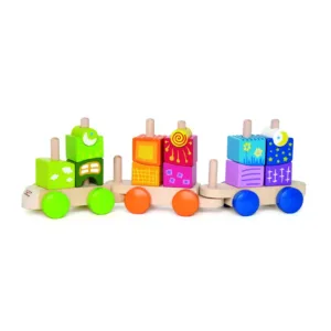 Blocurile cu forma unica, cu modele incantatoare, inspira constructia intr-un mod cu totul nou. Vagoanele interschimbabile adauga mai multe posibilitati. Nu exista o modalitate corecta sau gresita de a te juca cu aceste forme. incurajati incercarea de noi configuratii. Vorbeste despre tipare. Ce inspira ei? Jucariile sunt realizate din lemn, folosind materiale ecologice, vopsite in culori atragatoare cu vopsele nontoxice, care depasesc cele mai inalte si stricte standarde internationale de siguranta si calitate, precum EN71, ISO9001, ASTM F963 si altele. De multi ani, Hape a creat jucarii fantastice, de inalta calitate, folosind materiale ecologice si durabile, fiecare produs fiind atent proiectat pentru a stimula abilitatile senzoriale, fizice si emotionale.