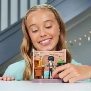Prefaceti-va ca va exersati prepararea potiunilor cu Harry Potter in sala de clasa de mini-potiuni magice din Wizarding World! Dispunand de o figura exclusiva de 7.5 inchi Harry Potter si trei accesorii tematice, tinerele vrajitoare, vrajitori si Muggles isi pot recrea scenele preferate din Harry Potter cu acest set de joaca distractiv. Cu copia sa a manualului de preparare avansata a potiunilor al Printului Semisange, Harry poate prepara potiuni, inclusiv norocosul Felix Felicis, in interiorul ceaunului fierbinte. Pozitionati figurina Magical Minis si aprindeti flacarile cazanului mutandu-l pe Harry peste locul de activare – flacarile se ridica si ceaunul se deschide magic! Sala de Potiuni are chiar si un biban pentru Hedwig (nu este inclus) pentru a va observa aventurile fermecatoare. Sala de clasa Magical Minis Potions este modalitatea perfecta de a-ti inspira imaginatia prin joc distractiv si captivant. Conectati setul de joaca la Castelul Magical Minis Hogwarts (vandut separat) si extindeti-va lumea Magical Minis cu setul de joaca Charms Classroom si Care of Magical Creatures (fiecare vandut separat). Colecteaza si conecteaza toate figurinele Magical Minis, seturile de prietenie si seturile de joaca pentru a-ti construi propria lume magica (fiecare vanduta separat)! Jucariile Magical Minis Harry Potter sunt cadourile perfecte pentru copii si fanii Harry Potter. Experimentati magia lui Harry Potter cu sala de clasa cu mini-potiuni magice din Wizarding World!