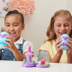 Distractie placuta cu aventurile familiale CollEGGtibles de la Hatchimals cu toate personajele noi si adorabile din seria Hatchimals Rainbowcation. Fiecare familie isi are un aspect si o tema unica, inspirata de activitatile lor preferate. Descopera zece seturi de joaca unice! Fiecare pachet Playdate contine un ou cu o trapa unica cu doua fete, trei Copii Mici, un Bebelus si doua accesorii. Dupa descoperirea personajelor, oul se transforma intr-o zona de joaca pentru intalnirea ta cu joaca. Pentru rezerva data de joaca, sparge partea din fata a oului Hatchimals pentru a gasi doi Copii Mici, apoi sparge cealalta parte pentru a gasi un alt Copil Mic, un accesoriu si un bebelusul dragut al pachetului! &Icircn interiorul ambalajului se gaseste cealalta piesa accesorie pe care o poti adauga la scena. Zona de joaca si adorabilii Hatchimals cu accesoriile adorabile din pachetul Playdate sunt perfecte pentru a te juca de-a povestitul. Cu peste 60 de Hatchimals noi si 10 pachete Playdate de colectionat (jucarii vandute separat), completeaza toate cele zece familii Hatchimals Rainbowcation. Jucariile surpriza Hatchimals CollEGGtibles sunt cadouri minunate pentru copiii cu varsta de 5 ani si peste. Experimenteaza dublarea trapei, dublarea distractiei cu pachetul Hatchimals CollEGGtibles Playdate!