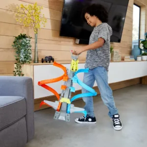 Setul de piste Hot Wheels Loop & Launch duce competitia pe noi culmi, cand masinile gonesc catre o cusca a castigatorilor care poate ajunge pana la 61 de centimetri inaltime! Vehiculele gonesc printr-o bucla in spirala, apoi se lanseaza catre cusca inevitabila care se inchide cand o masina ajunge la ea. Cusca este reglabila si poate fi ridicata sau coborata, in functie de nivelul de competitie dorit o serie de panouri cu puncte de-a lungul traiectoriei cresc entuziasmul provocarii. Fiecare pista se desprinde si se fixeaza pe pozitie pentru o instalare foarte simpla, apoi se pliaza cu usurinta pentru depozitare comoda. Include o masina Hot Wheels la scara 164 si este un cadou spectaculos pentru copii cu varste intre 5 si 10 ani. Culorile si decoratiunile pot varia.