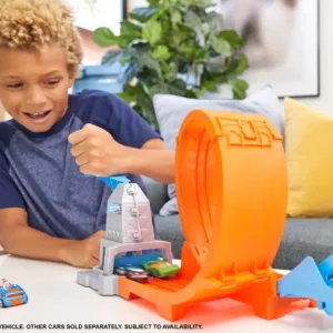 Testeaza abilitatile tale si prietenilor tai cu noile provocari de la Hot Wheels. Intra direct in actiune! Poti executa drifturi sau sarituri indraznete. Jucarie Pista Hot Wheels Champion GTV13, Mattel. O pista pentru campioni unde pilotii de cure isi pot testa abilitatile alturi de prieteni apropiati.Un circuit pentru profesionisti ce include 3 provocari o cursa de tractiune , o urcare indrazneata si un lansator cu maneta.Trageti de maneta si eliberati-o pentru a incepe numaratoarea inversa. Elemente de pista sunt compatibile cu alte seturi de pista Hot Wheels.Un set de joaca creativ ce dezvolta spiritul competitiv. Setul include si o masinuta de curse Hot Wheels exclusiva.