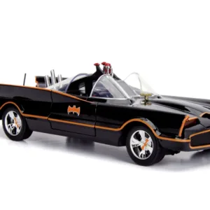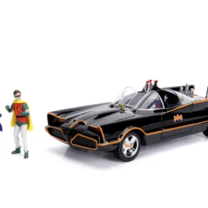 Nicio colectie Batman nu este completa fara iconicul Batmobil de la Batman serialul TV clasic! Avand anvelope de cauciuc si caracteristici de iluminare, acest Batmobil la scara 118 este un must-have in orice colectie! Sunt incluse doua figurine (Batman si Robin). Cu usile, capota si portbagajul ce se pot deschide, Batmobilul este formidabil pe toate tipurile de teren!