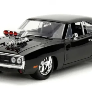 Niciun alt model de masina nu surprinde universul Fast and Furious mai bine decat muscle car-ul clasic Dodge Charger din 1970, masina preferata a lui Dominic Toretto (Vin Diesel). Ventilatorul impunator de pe capota este reproduce fidel si in aceasta macheta metalica la scara 124, cu o lungime de 19 cm. Vehiculul ruleaza usor pe roti libere si este prevazut cu usi, portbagaj si capota care se deschid, pentru o experienta realista de joaca sau expunere. Realizat din metal de inalta calitate si cu atentie la cele mai mici detalii, modelul este ideal atat ca piesa de colectie, cat si ca jucarie pentru copii cu varsta de 8 ani si peste. Emblematica masina a francizei devine astfel un obiect de atractie indispensabil pentru fanii Fast and Furious, indiferent de varsta.