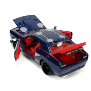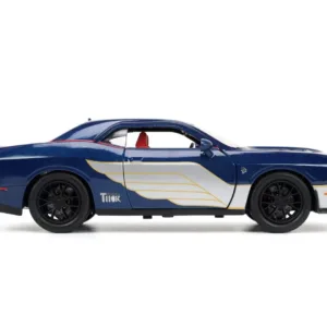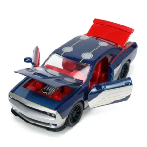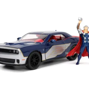 Cu un stil meticulos si inspirat de Zeul tunetului, acest Dodge Challenge SRT8 Hellcat 2015 prezinta linii elegante, cu logo-uri iconice si aripi asgardiene. Acest vehicul are usi, capota si portbagaj care se deschid. insotit de o figurina Thor aceasta plimbare este potrivita pentru zei. Colecteaza toate modelele Marvel inspirate de vehiculele turnate sub presiune cu figurine.