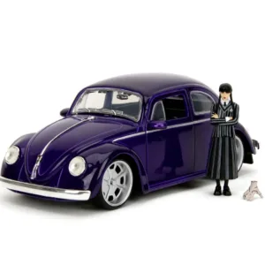 Jada Wednesday Set Masinuta Metalica Volkswagen Beetle 1:24 Si Figurina Metalica Wednesday 7cm