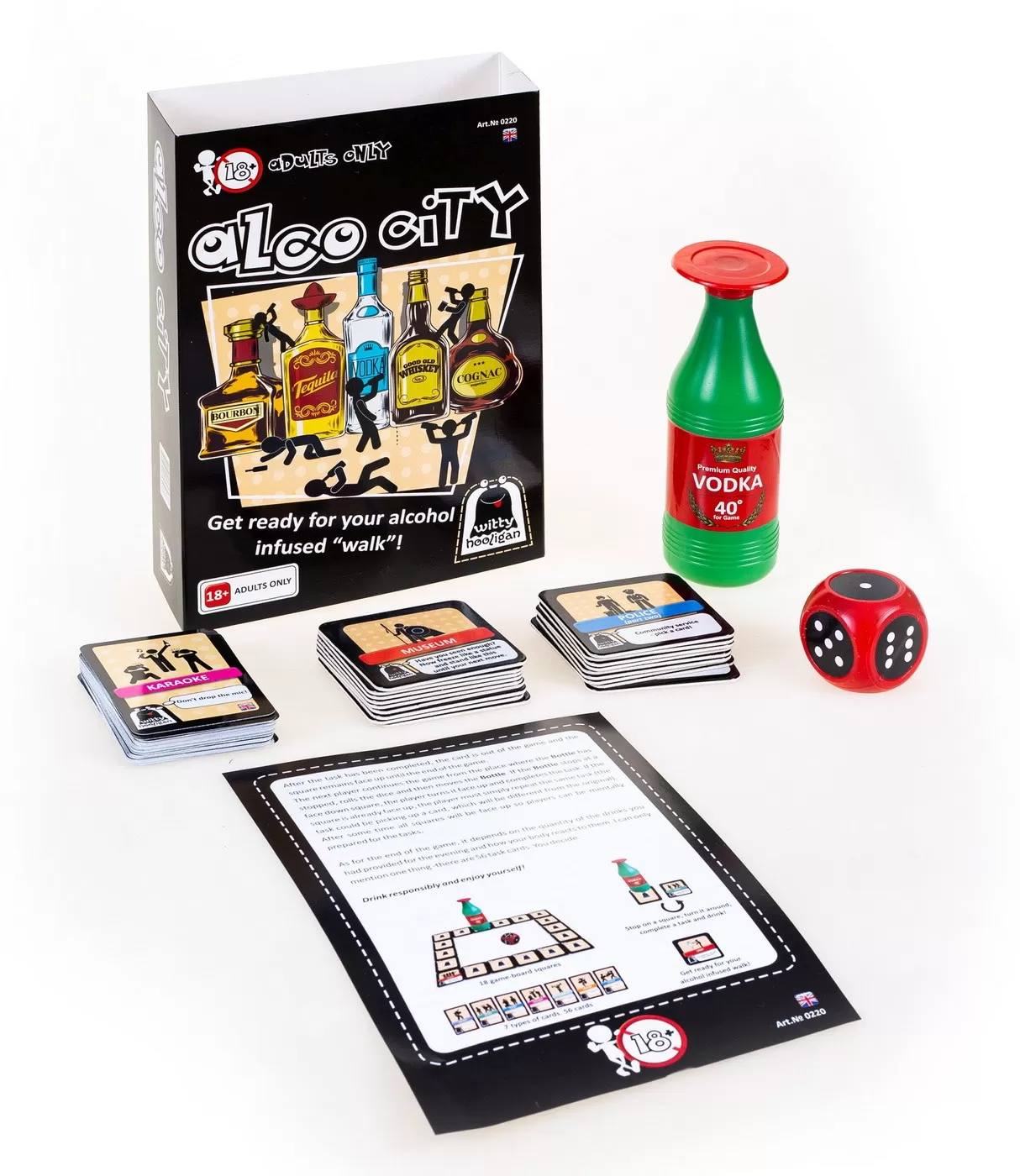 Alco City este un joc pentru adulti peste 18 ani din seria Witty Hooligan. În el veti avea ocazia sa va plimbati prin diverse locuri interesante pentru cunoscatorii vietii de noapte precum restaurante, discoteci, cluburi de striptease si nu in ultimul rand – biblioteca! Pentru a nu cadea in mainile politiei , trebuie sa va valorificati ingeniozitatea si maiestria! Pachetul contine 56 de carti, un zar, 18 carti cu locatii. Jocul se poate juca in 2-10 jucatori.