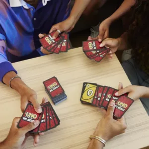 Jocul UNO Show 'em No Mercy adauga inca 56 de carti, reguli speciale si carti de actiune super dure pentru cea mai brutala editie a UNO vreodata!Cartile de actiune mai dificile, cum ar fi Skip Everyone, Wild Draw 6 si chiar Wild Draw 10, fac jocul nemilos!Regula de stivuire permite jucatorilor sa treaca penalizarea (Remiza +2, +4, +6, +10) urmatorului jucator pana cand cel care nu poate juca trebuie sa ia toate cartile combinate!Ori de cate ori o carte &bdquo7&rdquo sau &bdquo0&rdquo este jucata, jucatorii trebuie sa schimbe cartile cu un alt jucator!Regula Mercy inseamna ca, daca un jucator primeste peste 25 de carti in mana, este in afara jocului!Mai multe carti inseamna mai multe sanse de a arata adversarilor absolut nicio mila!Este un cadou grozav pentru a intensifica actiunea in noptile de jocuri cu prietenii si familia, calatorii si petreceri!