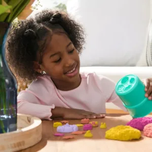 Da viata florilor cu nisipul kinetic SquishBlossom. Aceasta trusa de nisip kinetic va starni imaginatia si entuziasmul copiilor, care vor strange in mana materialul pentru a descoperi creatii florale incantatoare pe un spatiu de joaca mobil. Cu 227 g de nisip kinetic de culoare roz si galben neon, un ghiveci de flori si un mulaj, plus mulaje suplimentare pe fundul ghiveciului, SquishBlossom este un element de nelipsit pentru distractia de primavara. Asaza nisipul deasupra spumei moi si apasa pentru a-ti stampila floarea – atunci cand mulajul se ridica, floarea infloreste in mod magic. Amesteca nisip pentru a obtine portocaliu coral, apoi modeleaza trandafiri, albine si frunze cu mulajele ghiveciului de flori si vor inflori din nou. Nisipul kinetic unic este fabricat din nisip natural care nu se lipeste de alte obiecte, pentru o curatare usoara si nu se usuca niciodata. Lasa-l sa curga prin mainile tale – este atat de satisfacator, incat nu vei putea sa-l lasi deoparte. O alternativa la argila de modelat pentru arte si mestesuguri, nisipul kinetic este o completare binevenita pentru experienta senzoriala, ora de activitati si jucariile Montessori. Nisipul kinetic promoveaza abilitatile motorii fine si creativitatea prin joaca tactila independenta. SquishBlossom este o idee speciala de cadou pentru zile de nastere, pentru a umple cosurile pentru ocazii speciale, cadouri si multe altele. Infloreste din nou si din nou cu nisipul kinetic SquishBlossom.