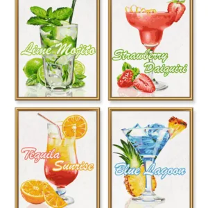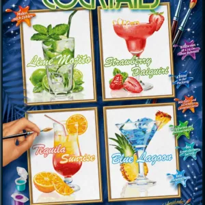Pictura pe numere, formata din 4 tablouri cu dimensiunea 24×30 cm, din carton cu textura din panza , cu desen conturat in numere, culorile si pensula sunt incluse. Culorile acrilice des utilizate in realizarea picturilor artistice ce nu necesita amestecare cu apa, culorile se gasesc in tuburi de plastic ce au atasate numere corespunzatoare conturului desenat pe panza, tabloul se poate agata ulterior pe perete . Ramele din plastic sunt incluse .