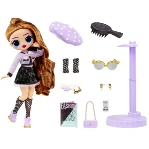 Descopera papusa L.O.L. Surprise! OMG – Pose! Pose este mereu gata de o sesiune de shopping, fiind experta in descoperirea celor mai noi tendinte! Cand prietenele ei se simt pierdute printre rafturi, Pose este cea pe care o suna, deoarece adora sa impartaseasca cele mai recente stiluri cu BFF-urile ei. Papusa Pose are trasaturi uimitoare, par superb, o tinuta glamour si este articulata pentru a-ti permite sa creezi nenumarate scenarii de joaca.Setul includeTinuta fabuloasa si accesorii care reflecta stilul rafinat al lui Pose.Bluza chic cu funda, poseta in forma de carcasa de telefon, bereta mov si multe altele.Pantofi, ochelari, perie de par si un stand pentru papusa.Colectioneaza-le pe toate si exploreaza o lume a modei, surprizelor si prieteniei!