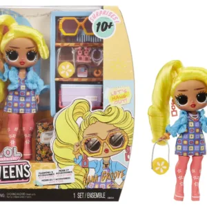 Faceti cunostinta cu Hana Groove, careia ii place sa colectioneze discuri si sa-si invite prietenele sa iasa, mai ales intr-o zi insorita! i Hana Groove este o fana a stilului retro si a magazinelor de discuri, si pe deasupra, are trasaturi uimitoare, par frumos, o tinuta fabuloasa inspirata din anii 70 si contine multiple puncte de articulatie pentru o multime de oportunitati de pozare si de joaca. Moda Unica imbrac-o pe Hana Groove cu tinuta si accesoriile ei unice incluse pentru a-i prezenta stilul retro si groovy, inclusiv rochia ei crosetata si cizmele roz pana la genunchi care au fost facute pentru plimbare. Dragostea ei pentru o zi cu soare poate fi vazuta in poseta cu imprimeu floral si in ochelarii de soare la moda! Tinuta ei include si o jacheta albastra, cercei patrati, o bratara adorabila si coliere cool! De asemenea, vine cu o lada frigorifica draguta care este cel mai bun accesoriu pentru orice picnic, impreuna cu o camera polaroid adorabila gata sa surprinda fiecare moment. Descopera 10 surprize – o papusa de moda Tweens, tinuta unica, pantofi, ochelari de soare, poseta, accesorii, lada frigorifica, camera foto si perie de par BFF pentru totdeauna Colectioneaza toate cele 4 papusi la moda de la L.O.L. Tweens Surprise Hana Groove, Flora Moon, Cassie Cool si Ellie Fly! Cadoul perfect pentru copiii cu varsta de peste 3 ani!