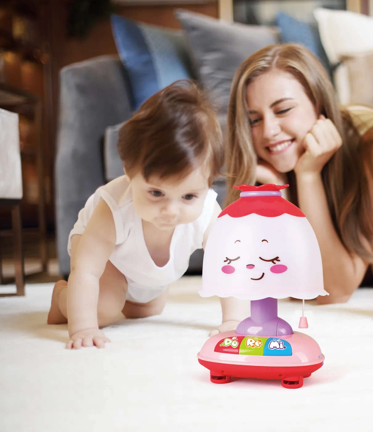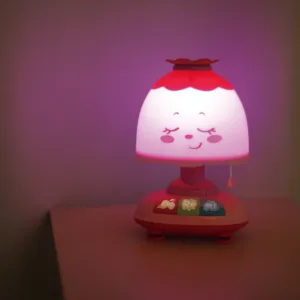 Lampa de veghe cu lumini si sunete. Creeaza un mediu confortabil pentru a ajuta copilul sa doarma. Luminile colorate insotite de muzica linistitoare si efecte sonore stimuleaza simturile vizuale si audace schimbarea culorilor il ajuta pe bebelus sa inteleaga cauza si efectul si sa dezvolte abilitati de gandire logica. 7 lumini diferite de culoare . 12 cantece diferite. Comutator de alimentare / volum.