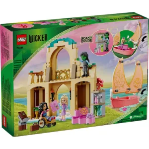 Transporta fetele si baietii de peste 7 ani in tinutul Oz cu jucaria fantasy Glinda, Elphaba si Nessarose la Universitatea Shiz (75681). Este cadoul ideal pentru copiii care indragesc seturile cu casute pentru papusi si pentru fanii filmului Wicked. Fanii pornesc in propria aventura LEGO® Wicked atunci cand Glinda soseste la Universitatea Shiz cu o barca cu panze de jucarie pentru copii. Barca are o vela articulata si este colorata intr-o nuanta de roz, la fel ca cea din film. Inspirat de filmul Wicked, acest cadou pentru cel mai bun prieten sau cea mai buna prietena ofera copiilor ocazia sa interpreteze povesti despre prietenie intre figurinele minipapusi Glinda, Elphaba si Nessarose. Cladirea detaliata cu 2 etaje are 2 balcoane si o camera cu un raft pentru carti. Copiii pot descoperi codul QR si il pot scana cu dispozitivul lor pentru a debloca continut online LEGO Wicked unic. Setul cu casuta pentru papusi este plin cu accesorii creative, precum flori, potiuni si un sticker pentru scaunul cu rotile al lui Nessarose, astfel incat copiii care adora casutele pentru papusi sa-si personalizeze setul exact asa cum doresc.