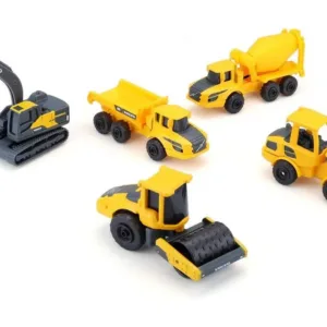 Acest set contine 5 mini vehicule de constructie Volvo, ideale pentru joaca si colectionare. Vehiculele sunt realizate din metal turnat sub presiune (die-cast), cu componente din plastic, oferind un echilibru intre durabilitate si detalii realiste. Vehiculele sunt vopsite in culorile galben si gri specifice marcii Volvo, oferind un aspect autentic. Fiecare vehicul are parti mobile, adaugand un plus de realism si interactivitate in timpul jocului. Rotile vehiculelor se rotesc liber, permitand deplasarea usoara pe diverse suprafete. Setul stimuleaza imaginatia si creativitatea copiilor, permitandu-le sa creeze scenarii de constructie realiste. Setul este o alegere excelenta pentru copiii pasionati de vehicule de constructie si pentru colectionari, oferind calitate, detalii realiste si o experienta de joc interactiva.