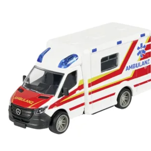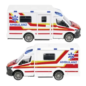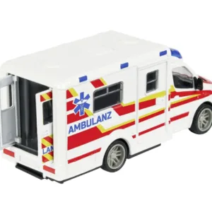 Autospeciala de salvare Majorette este o ambulanta metalica detaliata, inspirata de vehiculele medicale reale. Cu design modern, in culorile alb, rosu si galben, si inscriptionata cu &bdquoAMBULANZ&rdquo, masina reda perfect aspectul unei ambulante germane de urgenta. Modelul dispune de roti mobile, faruri si girofaruri albastre, precum si de detalii realiste pe caroserie. Fabricata din metal rezistent, este ideala atat pentru joaca, cat si pentru colectionari. Un vehicul de interventie esential in orice oras in miniatura Majorette.