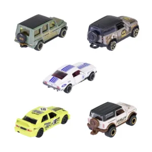 Set de masini din seria CastHeads (5 masini) – 5 masini de jucarie din metal, fiecare 7,5 cm, pentru colectionari si copii de la 3 ani si peste, cu roata libera, suspensie si piesa de deschidere. 5 masini model 1. Ford Mustang Fastback (alb), 2. Ford Bronco Wildtrak (bej), 3. Land Rover Defender 90 (gri), 4. Mercedes-Benz 190 E 2.5-16 EVO II (galben), 5. Mercedes-Benz G 500 (verde). Calitate dovedita a masinii model Majorette combinata cu un design impresionant al vehiculului Acest set cadou Majorette a fost creat in cooperare cu revista CastHeads. Fiecare dintre cele 5 masini de jucarie cu licenta oficiala este fabricata din metal robust si este echipata cu roata libera, suspensie si o parte de deschidere – potrivite pentru varsta de 3 ani in sus.