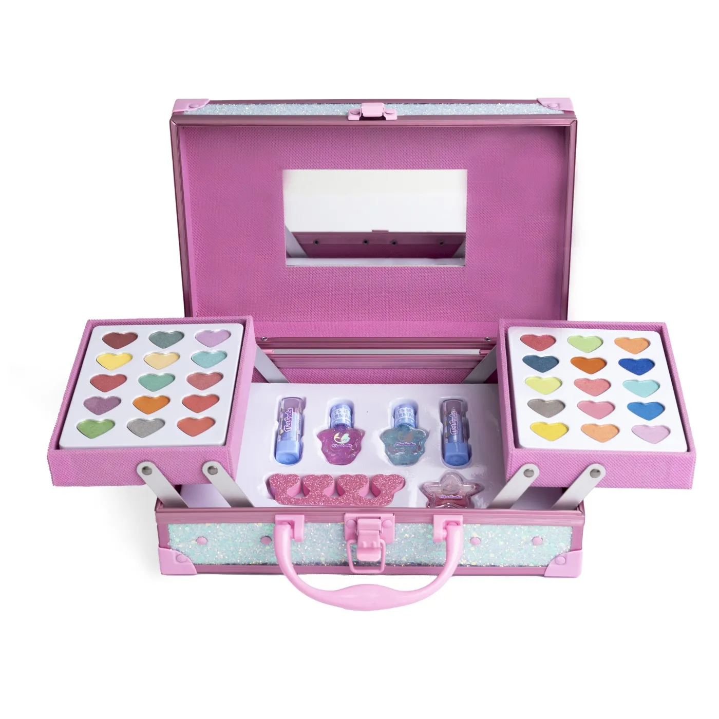 Cu aceasta trusa de machiaj, cele mici din casa se vor simti ca niste sirene creandu-si cele mai bune look-uri de machiaj. Aceasta servieta metalica cu inchidere sigura nu este doar practica si organizata, dar si designul sau fermecator ii va fascina. Contine 1 oglinda, 30 farduri de pleoape, 2 rujuri, 1 luciu de buze, 2 lacuri de unghii, 1 separator de degete.