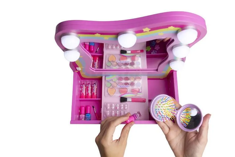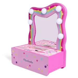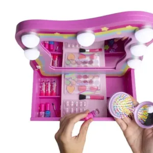 Faceti timpul de joaca si mai distractiv cu adorabila noastra trusa de machiaj cu oglinda si lumini pentru copii! Conceputa special pentru micutele vedete din casa, acest set dispune de o oglinda iluminata si accesorii de machiaj pentru ore intregi de distractie in siguranta. Cufundati-va in lumea imaginatiei si a creativitatii. Va va da viata imaginatiei la fiecare joc!
