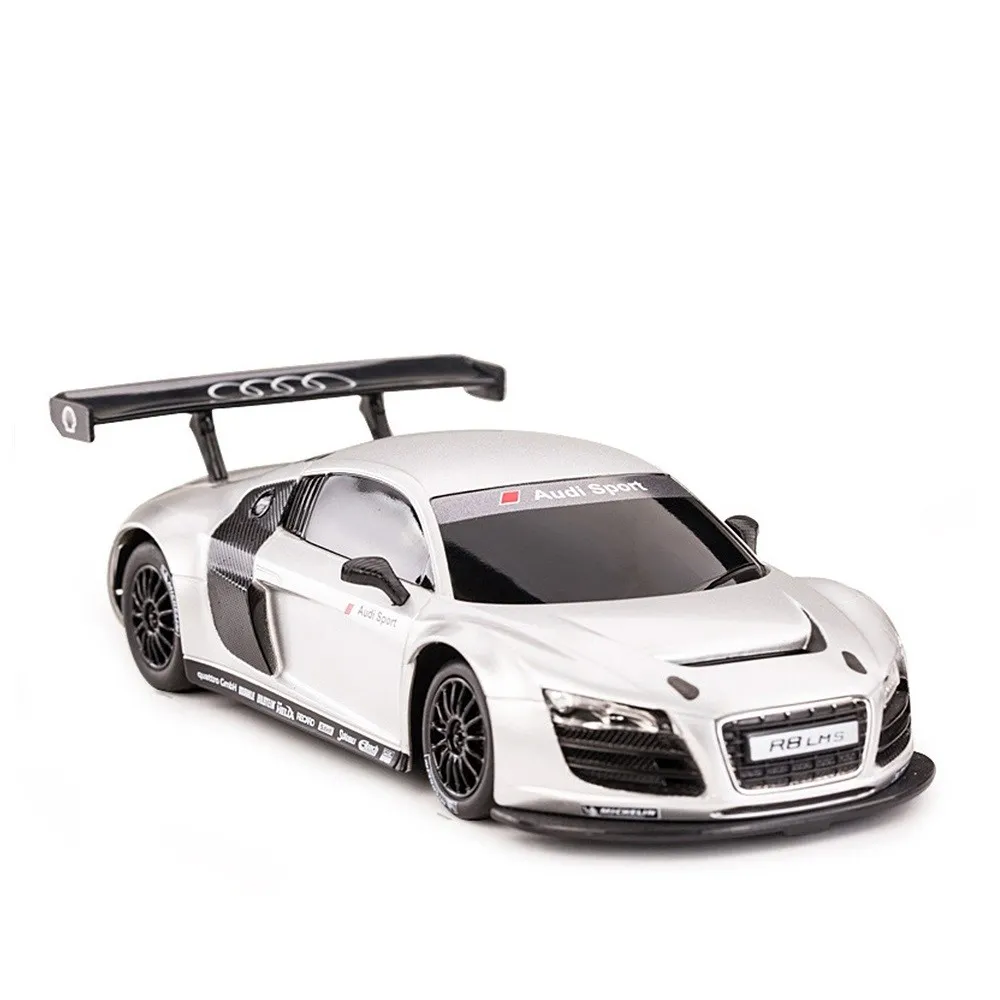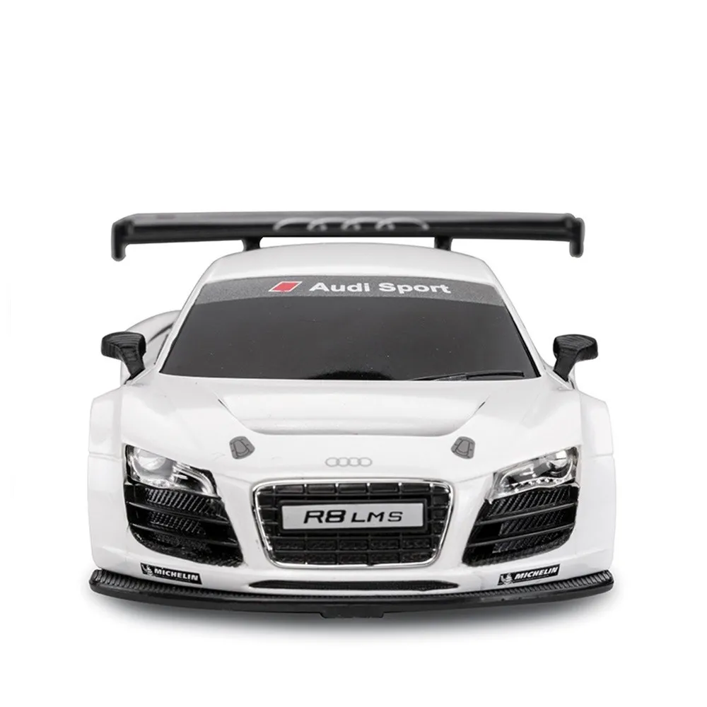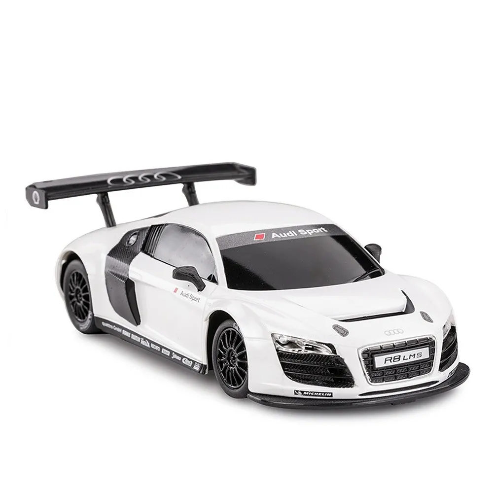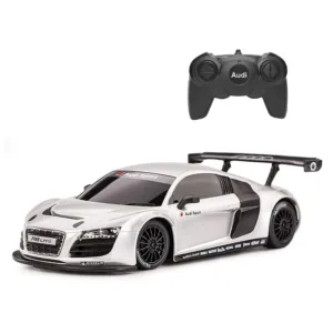 Copilul dumneavoastra se poate juca in voie cu masina cu telecomanda Audi R8, scara 1 la 24, oferita de brandul international Rastar. Nicio cursa nu este imposibil de castigat cu acesta masinuta, replica oficiala cu licenta a modelului original, construita cu mare atentie la detalii. Masinuta are proportiile ideale pentru momente pline de distractie si amuzament, avand dimensiunile in centimetri dupa cum urmeaza 17*8.6*8.3.Masinuta functioneaza pe frecventa de 2.4G.Alimentarea se face astfel pentru masinuta sunt necesare 3 baterii tip AA , iar pentru telecomanda 2 tip AA.Masinuta se poate deplasa in toate directiile inainte, inapoi, stanga sau dreapta. Masina cu telecomanda Audi R8, scara 1 la 24, poate rula cu o viteza aproximativa de 10km/h, are tractiune 2WD, anvelope de cauciuc, posibilitate de reglaj a directiei direct pe sasiu si o raza de actiune a telecomenzii de circa 20 de metri.