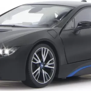 Copilul dumneavoastra se poate juca in voie cu masina cu telecomanda Bmw I8, scara 1 la 14, oferita de brandul international Rastar. Nicio cursa nu este imposibil de castigat cu acesta masinuta, replica oficiala cu licenta a modelului original, construita cu mare atentie la detalii. Masinuta are proportiile ideale pentru momente pline de distractie si amuzament, avand dimensiunile in centimetri dupa cum urmeaza 32.3*14.8*13.9.Masinuta functioneaza pe frecventa de 2.4G.Alimentarea se face astfel pentru masinuta sunt necesare 5 baterii tip AA , iar pentru telecomanda 2 tip AA.Masinuta se poate deplasa in toate directiile inainte, inapoi, stanga sau dreapta. Masina cu telecomanda Bmw I8, scara 1 la 14, poate rula cu o viteza aproximativa de 10km/h, are tractiune 2WD, anvelope de cauciuc, posibilitate de reglaj a directiei direct pe sasiu si o raza de actiune a telecomenzii de circa 20 de metri.Acesta masinuta are si o functie suplimentara care face ca farurile si stopurile masinutei sa lumineze.
